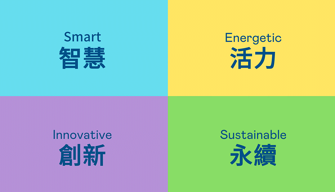 从稳重、信赖的抖圈蓝开创新色彩,注入象征智慧蓝、活力黄、创新紫、永续绿的品牌色及动态多变的几何图形,呼应不设限的「Possibilities」精神,代表多元的专业技术及领域,在碰撞中相互触动、融合、延伸,持续激荡出更多新的可能性。